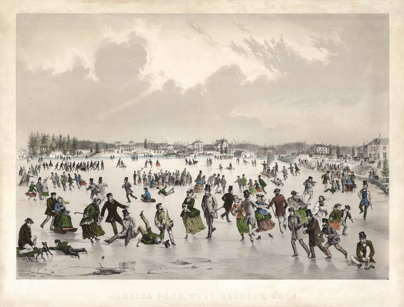 DESCRIPTION: Winslow Homer was apprenticed to John Bufford in 1858 at the age of 19. This image is believed to be the first print produced after a Winslow Homer design. The figures are correct when comparing them to the other Winslow Homer skating images of the era. However, it has never been documented as a Winslow Homer image. In 1859 Homer left the lithographic firm of John Bufford and moved to New York City to begin a career as an illustrator.