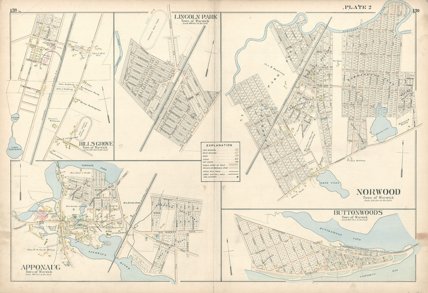 DESCRIPTION: A handsome and quite detailed large scale map of these five villages within the town of Warwick. The maps notes roads, ponds and homes along with the owners names. Appeared in Everts & Richards "Atlas of Rhode Island."