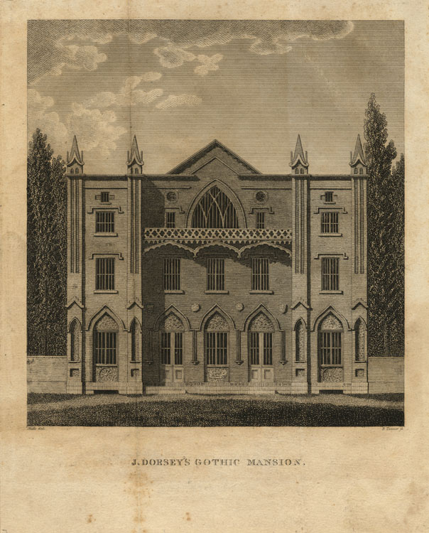 DESCRIPTION: Published in Views of Philadelphia from "The Port Folio" (1801-27). Engraved by Benjamin Tanner. Noted as being one of the first Gothic Structures in America.