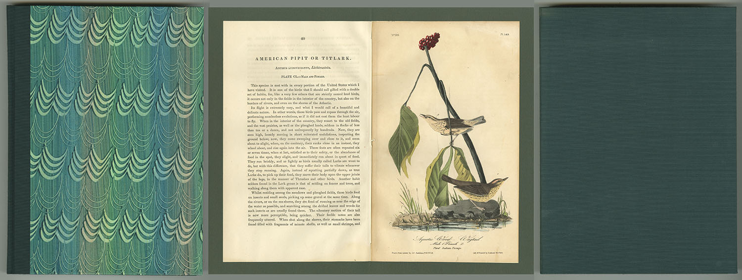 DESCRIPTION: by Ron Tyler. 213 pages,67 illustrations, (36 color), quarto (4to), hardcover in clam shell box. Box is dark green with label on spine covers are decorative paper over boards with black cloth spine. This is the deluxe edition limited to 225 copies, containing two original octavo Audubon birds the same bird from the first and second edition in a folder in the clam shell box. Designed by W. Thomas Taylor. The type is Monotype Bembo, cast and printed by Bradley Hutchinson, on Mohawk Superfine Paper. Page make-up and hand composition is by Neil Furgueron. The Calligraphy is by Jerry Kelly. The Illustrations were printed by David Holman at the Wind River Press, and the binding was executed at BookLab, with past-papers made by Jace Graf. The boxes were produced by Judi Conant.