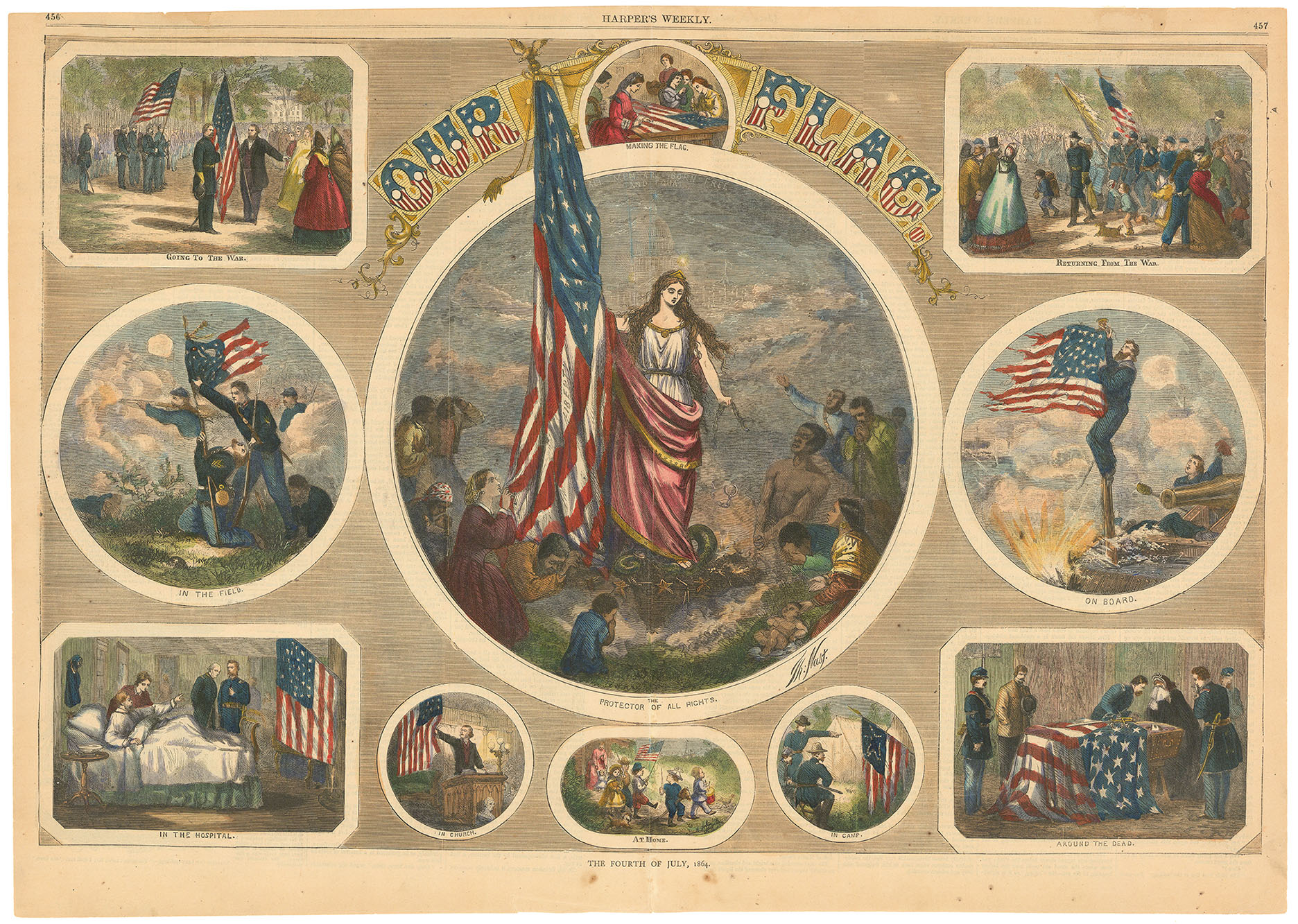 DESCRIPTION: Appeared in the July 16, 1864 edition of Harper’s Weekly, this work by Thomas Nast captures both the turmoil of the Civil War and the unifying force of patriotism during one of the most divided periods in American history.