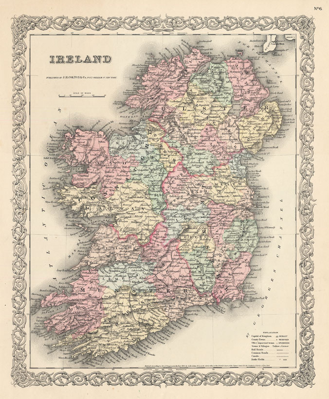 DESCRIPTION: A decorative and well engraved map from "Colton's Atlas of World." Nicely colored by county.