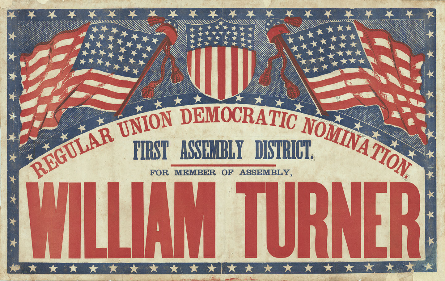 DESCRIPTION: William D. Turner (1839-1905) ran for the Wisconsin State Assembly in 1883 which is likely what this broadside was made for. He was born in Quincy Illinois on June 1, 1836 and served int he Union Army during the Civil War. He later moved to Spokane, Washington then to Bozeman, Montana where he was president of the Yellowstone Park railway, founded in 1899. He died in Los Angeles on April 2, 1905.