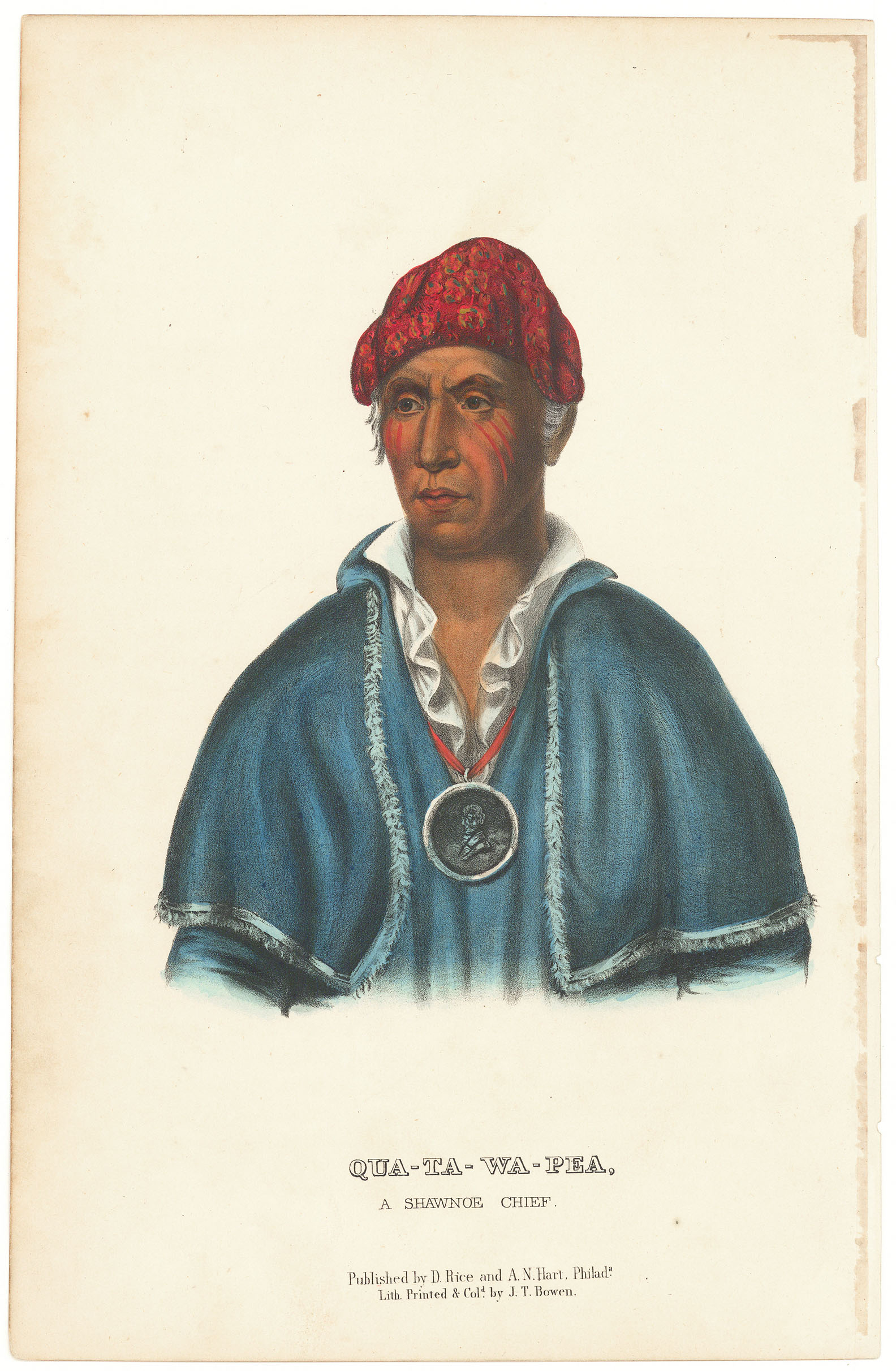 DESCRIPTION: From the octavo edition of "History of the Indian Tribes of North America" by Thomas L. McKenney and James Hall. Lithographed, printed and colored by J. T. Bowen, Philadelphia. <br><br>