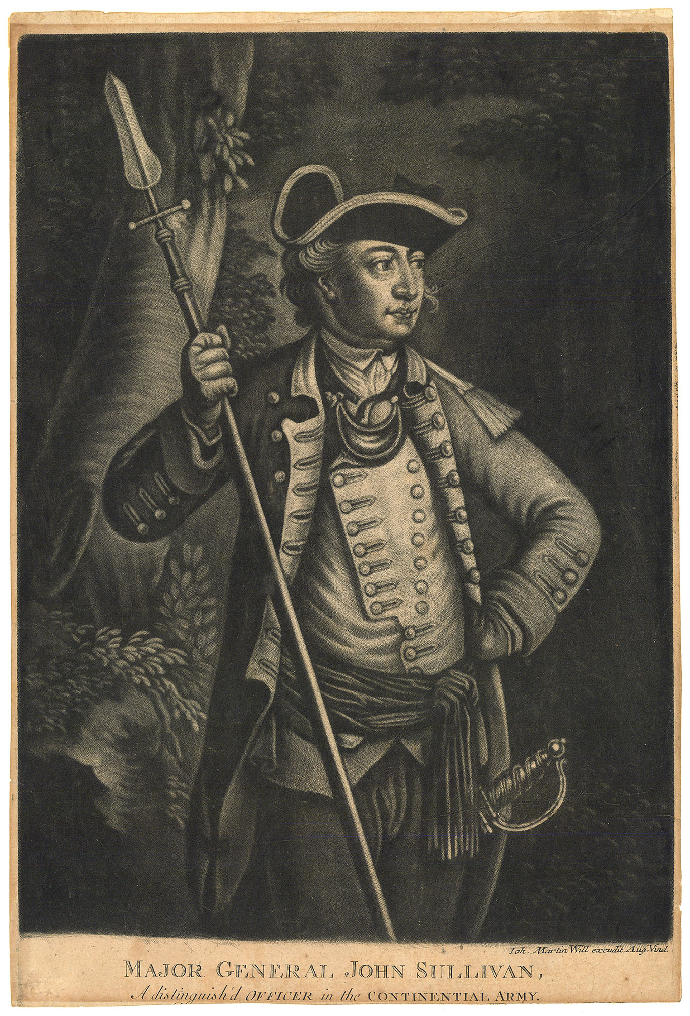 DESCRIPTION: Joh, Martin Will excudit Aug. Vind. <BR><BR> John Sullivan was born in New Hampshire on February 17, 1740 and began life as a lawyer. In 1774 he was made a delegate of his state and was sent before the First Continental Congress. With battles heating up around the colonies, Sullivan took up arms and led troops into conflicts such as The Battle of Long Island and the Battle of Trenton. He is perhaps best known, however, for his efforts in the Sullivan Expedition (also known as the Clinton-Sullivan Campaign), in which he struck back at the Native Americans who had aligned themselves with the crown. The campaign began in 1779 when attacks made by the Six Nations began to cripple the Continental Army by cutting off the delivery of food, goods and additional manpower. Four brigades (numbering more than four-thousand men), commanded by General John Sullivan and General James Clinton, were sent out by General Washington to take care of the matter. By the end of the campaign more than forty Native American villages had been destroyed and the survivors forced north, to Niagara, where they struggled to survive with meager British assistance. All this came with few casualties to the Continental Army.