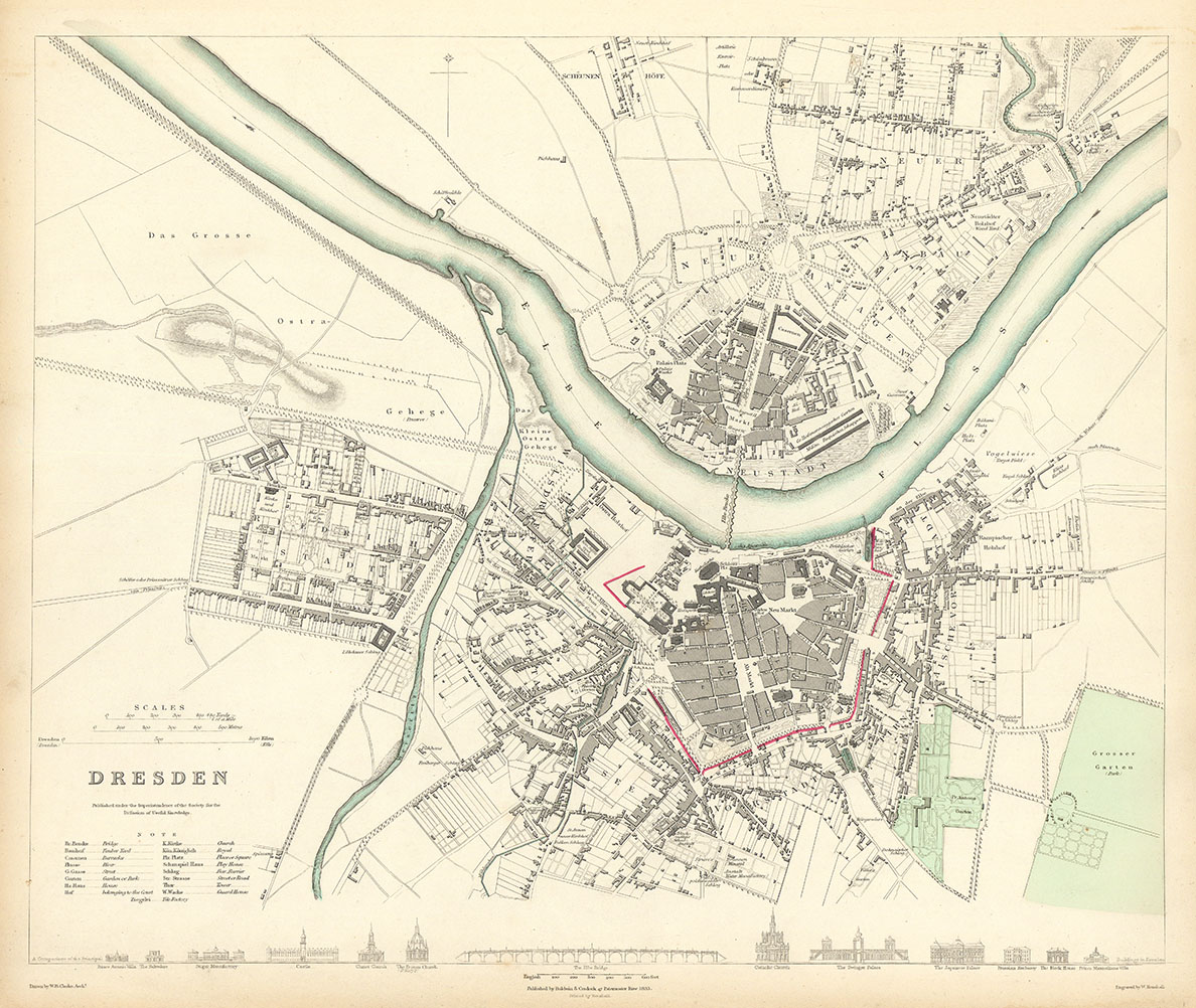 DESCRIPTION: A fine and detailed plan of this German city. <br><br> The Society for the Diffusion of Useful Knowledge, better known as SDUK, was an English enterprise devoted to spreading the most up to date cartographic information and enhancing geographical understanding and knowledge of the world. Over a period of years, the maps that the SDUK produced were issued by various publishers. The following is a breakdown. Baldwin & Craddock, 1829-36. Chapman & Hall, 1844. C. Knight, 1844-52. G. Cox, 1852-3. Stanford, 1857-70. The maps from this series are known for their fine engraving and attention to detail.
