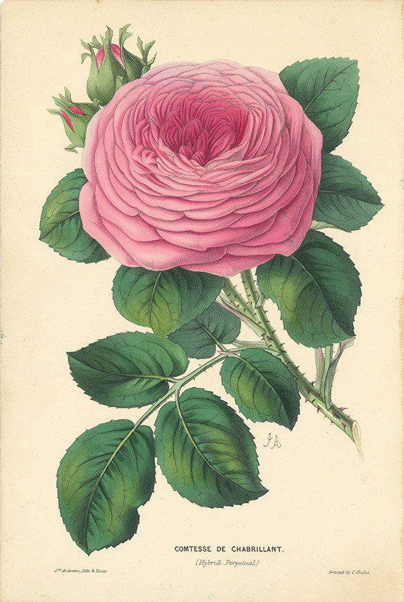 DESCRIPTION: From, The Rose Annual for 1858-59, by William Paul, F. H. S. Text sheet included. "... The petals are of great substance, silvery beneath : the foliage and habit are good, the branches thick and short, bearing an abundance of flowers. ..."