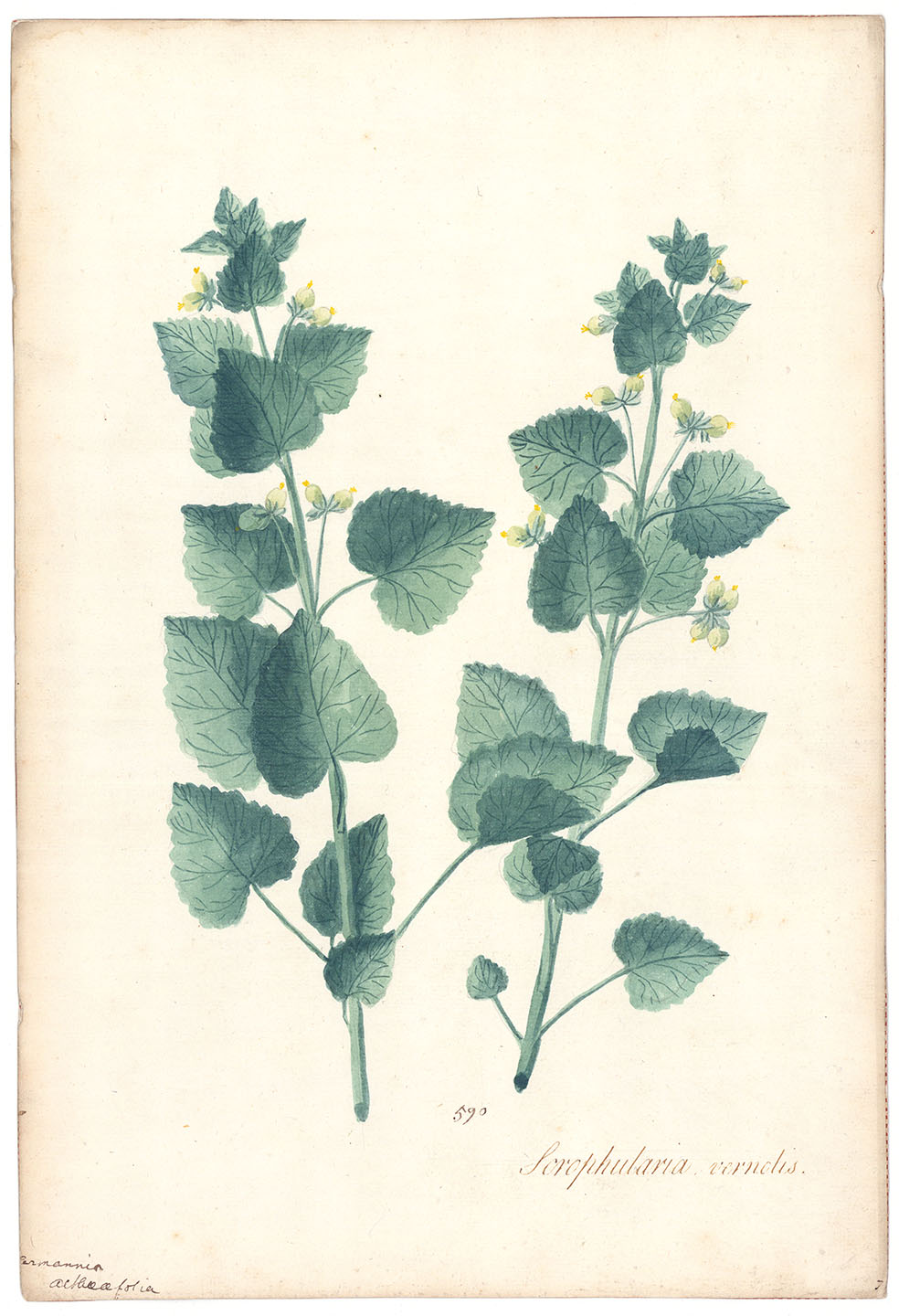 DESCRIPTION: This early 19th-century botanical watercolor is painted on laid paper by an unknown artist.