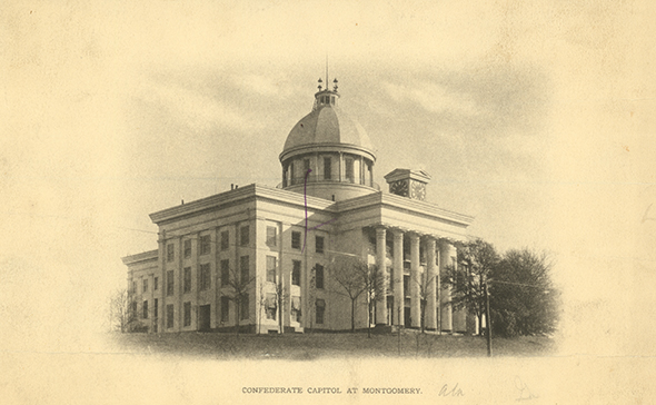 DESCRIPTION: Photolithograph of the confederate capitol at Montgomery. Unknown publication, Ca. 1890.
