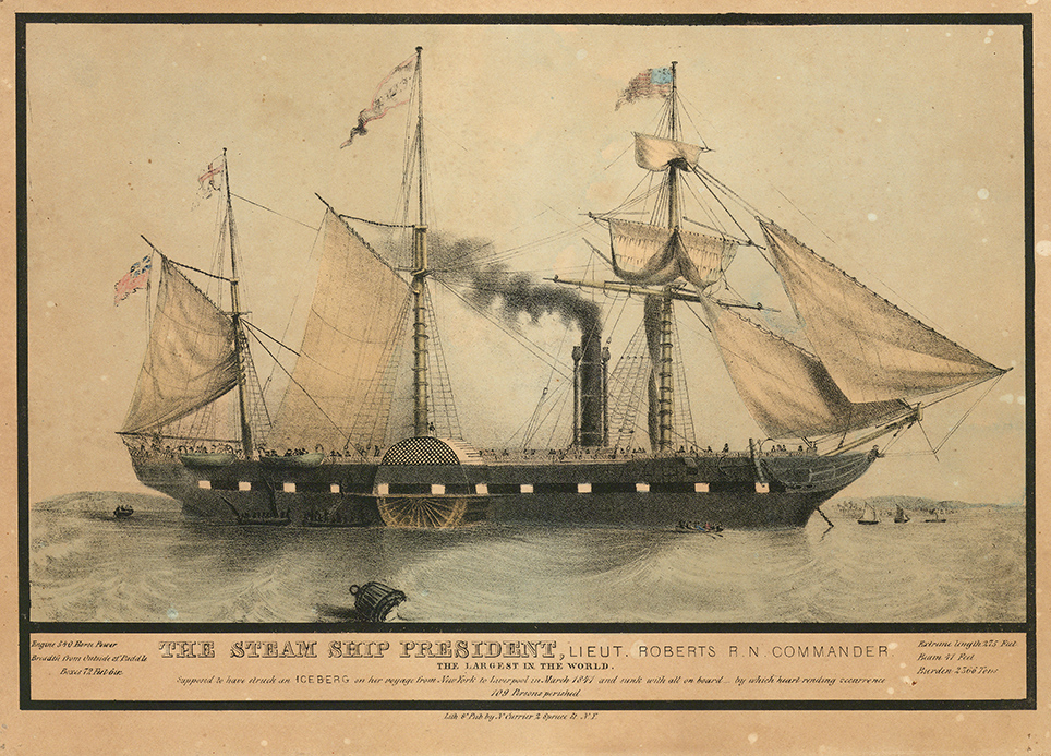 DESCRIPTION: Image size with black line (includes title) 8 13/16 x 12 13/16" (22.4 x 32.8 cm). No artist noted as with other impressions of this print. Two columns of three lines each on the sides of the title describing the engine and the ship.