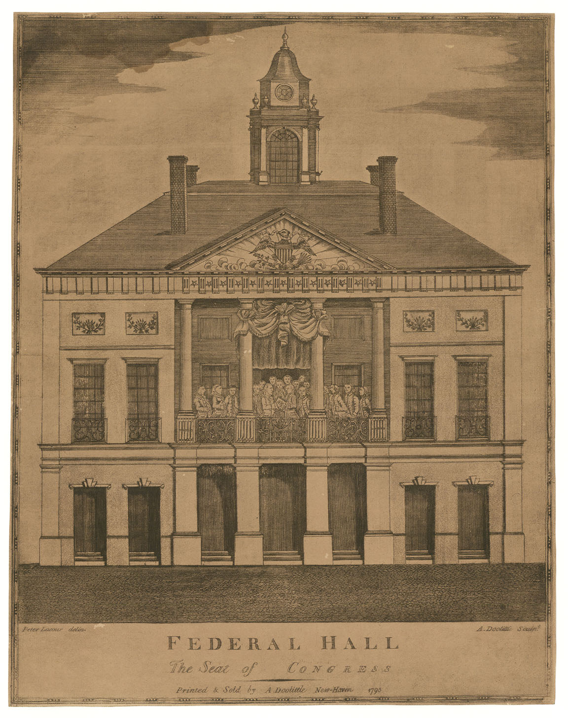 DESCRIPTION: This photo-gravure, engraved by Amos Doolittle and based on a drawing by Peter Lacour, is the only known contemporary image capturing George Washington as he took the Oath of Office to become the first President of the United States. The engraving depicts the inaugural ceremony held at New York's Federal Hall, meticulously detailed on the National Archives website. It captures a momentous day when Washington, escorted by city troops and governmental officials, took his oath in a public ceremony designed to be witnessed by as many citizens as possible, reflecting the new nation's democratic ideals. Produced in the early 20th century from an original housed at the New York Public Library, this rare print was created through photo-gravure on early-style laid paper. With fewer than five period impressions known to exist, this print not only offers a visual recount of a pivotal moment in American history but also holds significant historical value. As Washington swore to preserve, protect, and defend the Constitution, a salvo of 13 cannons marked the solemnity of the event, a scene vividly captured in this precious print.
