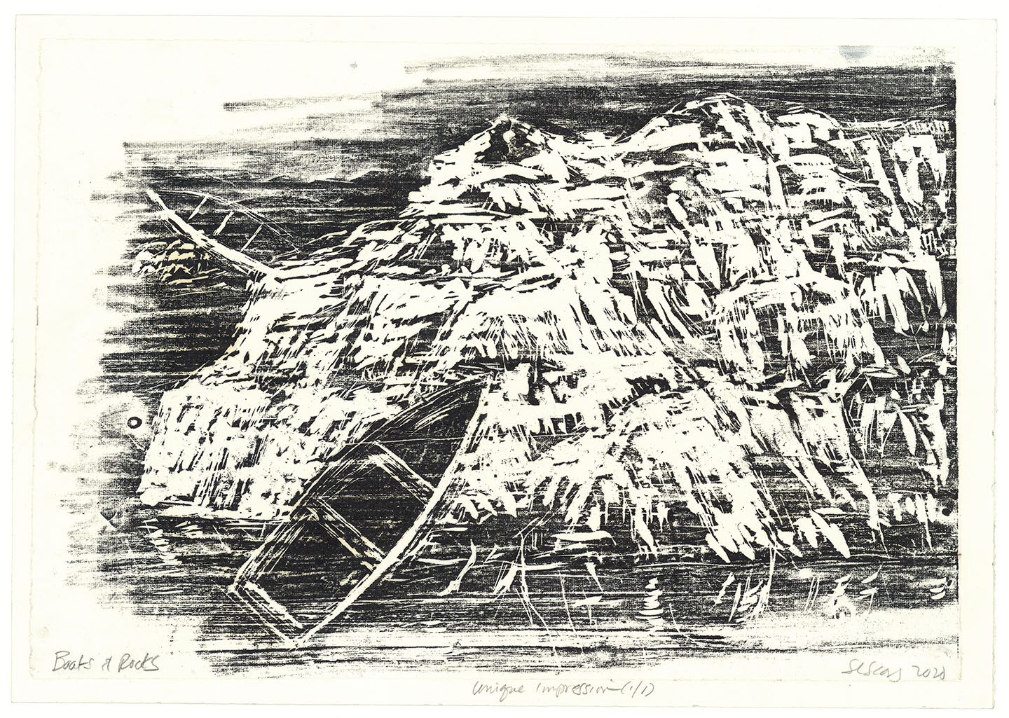 DESCRIPTION: Signed, titled, and dated. Inscribed "Unique Impression "1/1." Tipped on board by artist.
