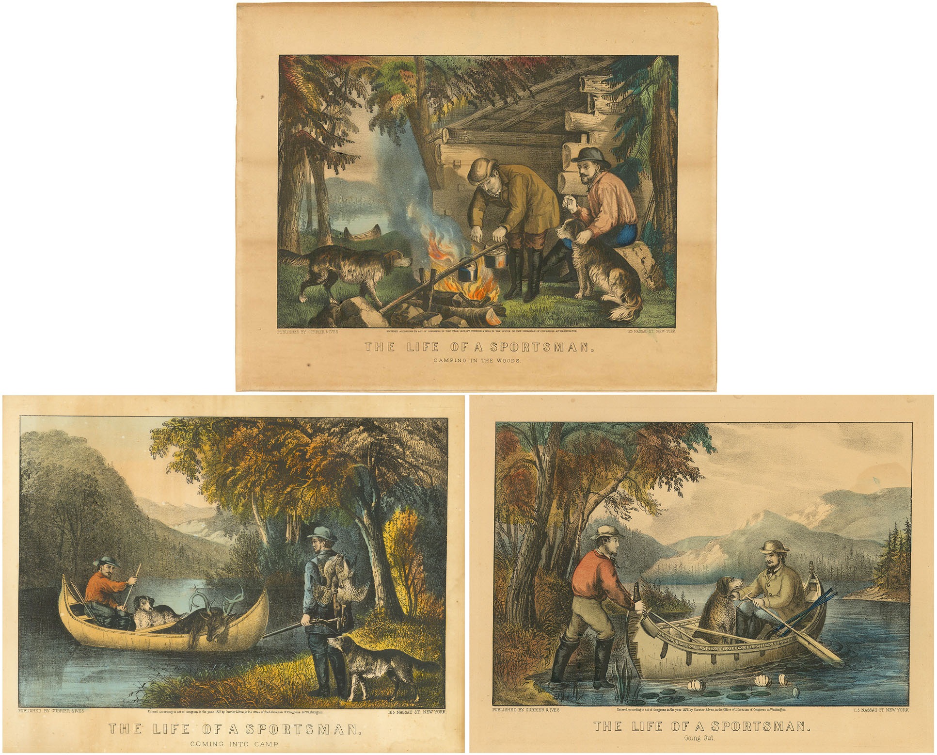 CONDITION: Good condition and color, mild toning on Camping in the Woods.