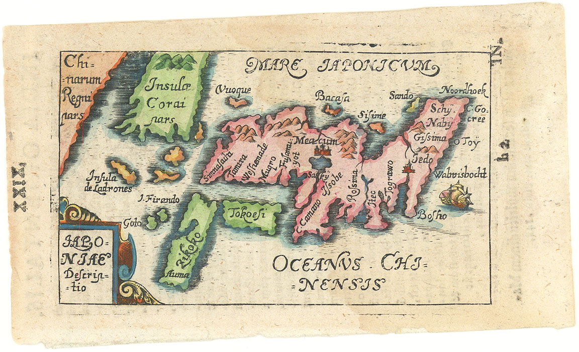 DESCRIPTION: Miniature map of Japan and Korea. Cartographically, it is based on the Dudley/Jansson maps of Japan. Korea is identified as an island. Bucelin's atlas contained 30 maps and was published by Johann Praetorius and Johann Gorlinus in 1658 and 1664. Latin text on verso.