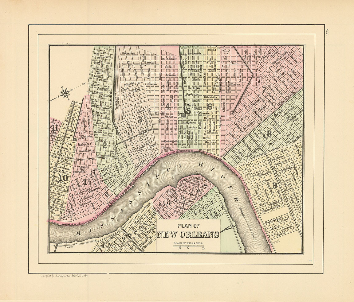 DESCRIPTION: A fine maps of the Big Easy that appeared in Bradley's "Atlas of the World"