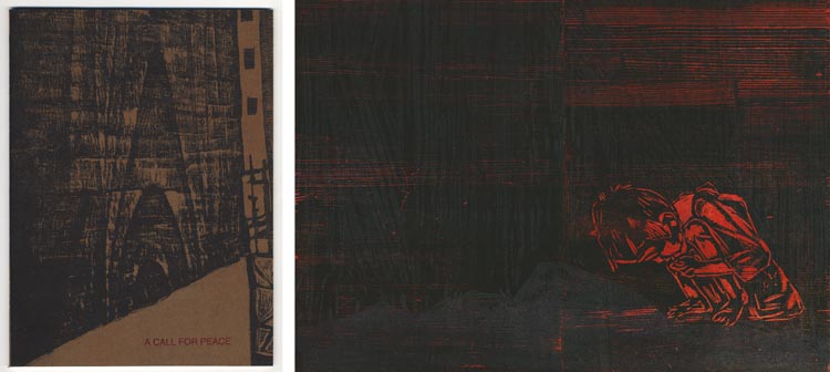 DESCRIPTION: Signed in pencil. A poem by Andrew Acciaro, "Upon Pleasant Pastures," was handwritten for this book. Two-color woodcuts by Ilse Schreiber-Noll. <BR><BR> "The Book: "A Call for Peace" was printed, conceived and bound by Ilse Schreiber-Noll in 2012 in an edition of 10 copies. The artist hand printed the woodcuts and the poet handwrote his poem for this book. The text was printed on the Letterpress at the Center for Editions, School of Art and Design, SUNY, Purchase College, NY..<br><br> Statement by Martin Luther King, Jr., on front page.