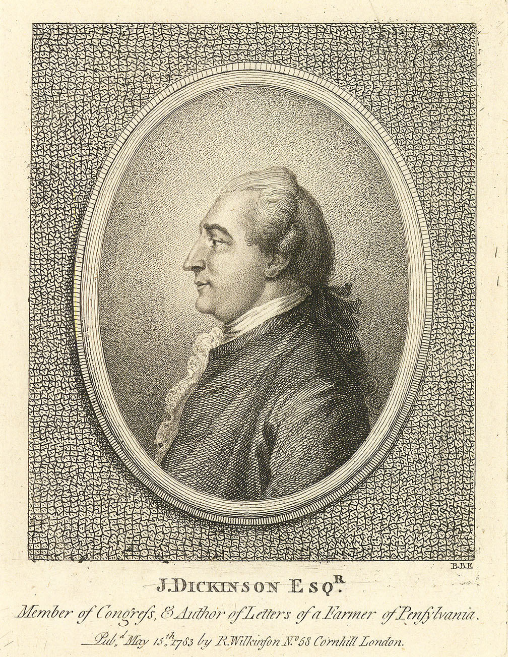 DESCRIPTION: Drawn by Pierre Eugene Du Simitiere, engraved by B. B. Ellis. <BR><BR> John Dickinson (1732-1808) was one of the influential political thinkers and writers of the American Revolution. His Letters from a Farmer in Pennsylvania to the Inhabitants of the British Colonies published in 1768, set out the colonial argument for opposing British taxation more clearly and persuasively than any previous work.