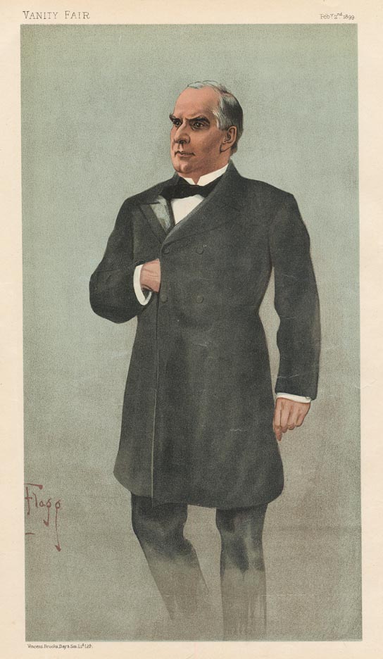 DESCRIPTION: An image of President William McKinley after a drawing by James Montgomery Flagg. Printed by Vincent Brooks Day & Son. One of a group of sixteen portraits of Americans, including four U.S. Presidents, produced by Vanity Fair.