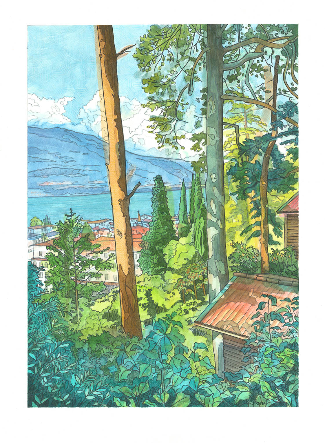 MEDIUM: Watercolor with colored pencil.