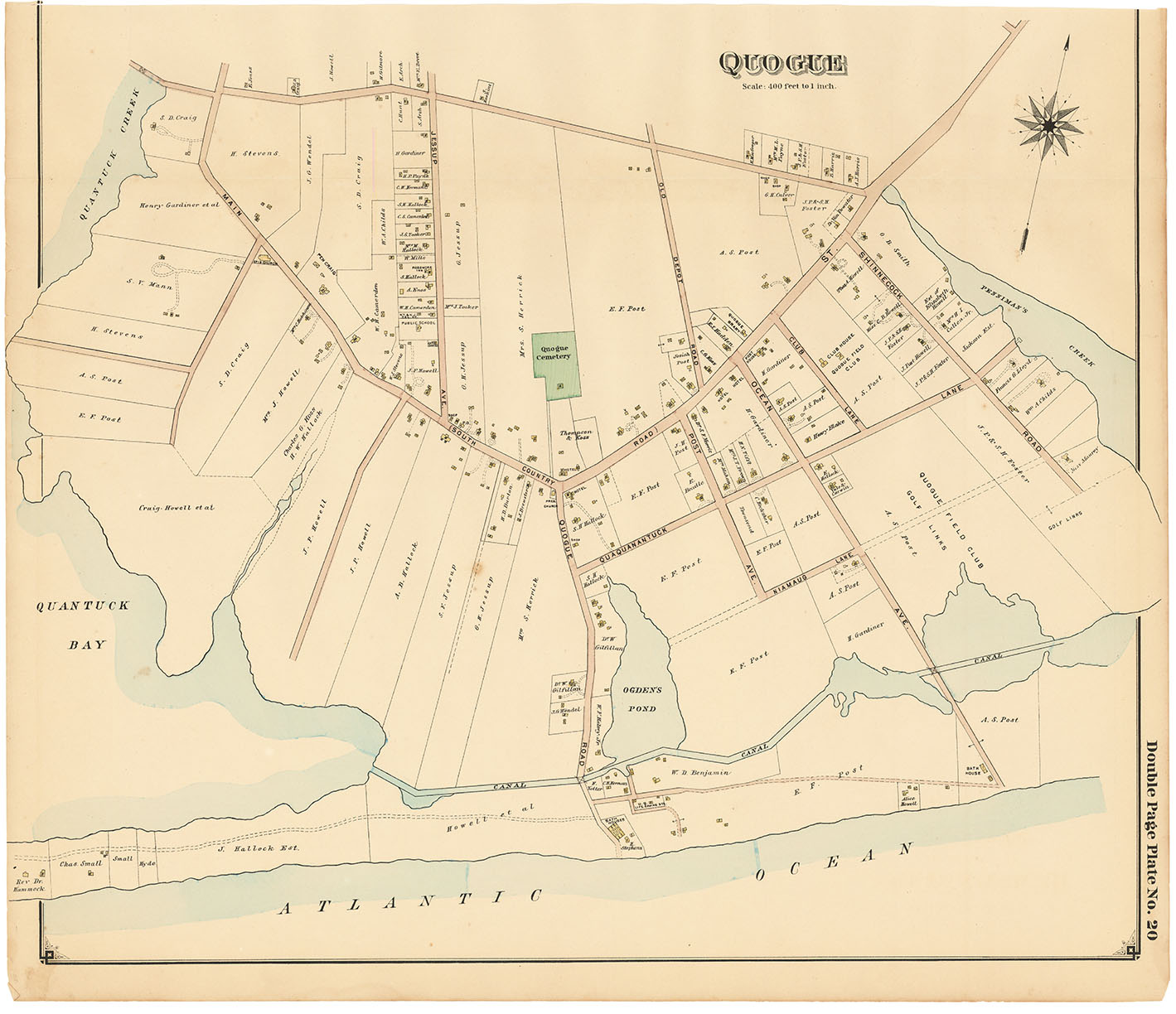 DESCRIPTION: This map map shows Eastport to Remsenburg. This detailed map notes building owners, lots and structures. Appeared in Hyde's very scarce oversized "Atlas of Suffolk County Long Island, New York. South Side - Ocean Shore.” Drawn on a scale of 400 feet to the inch.<br><br> The is the upper portion of a larger sheet that showed two different towns.