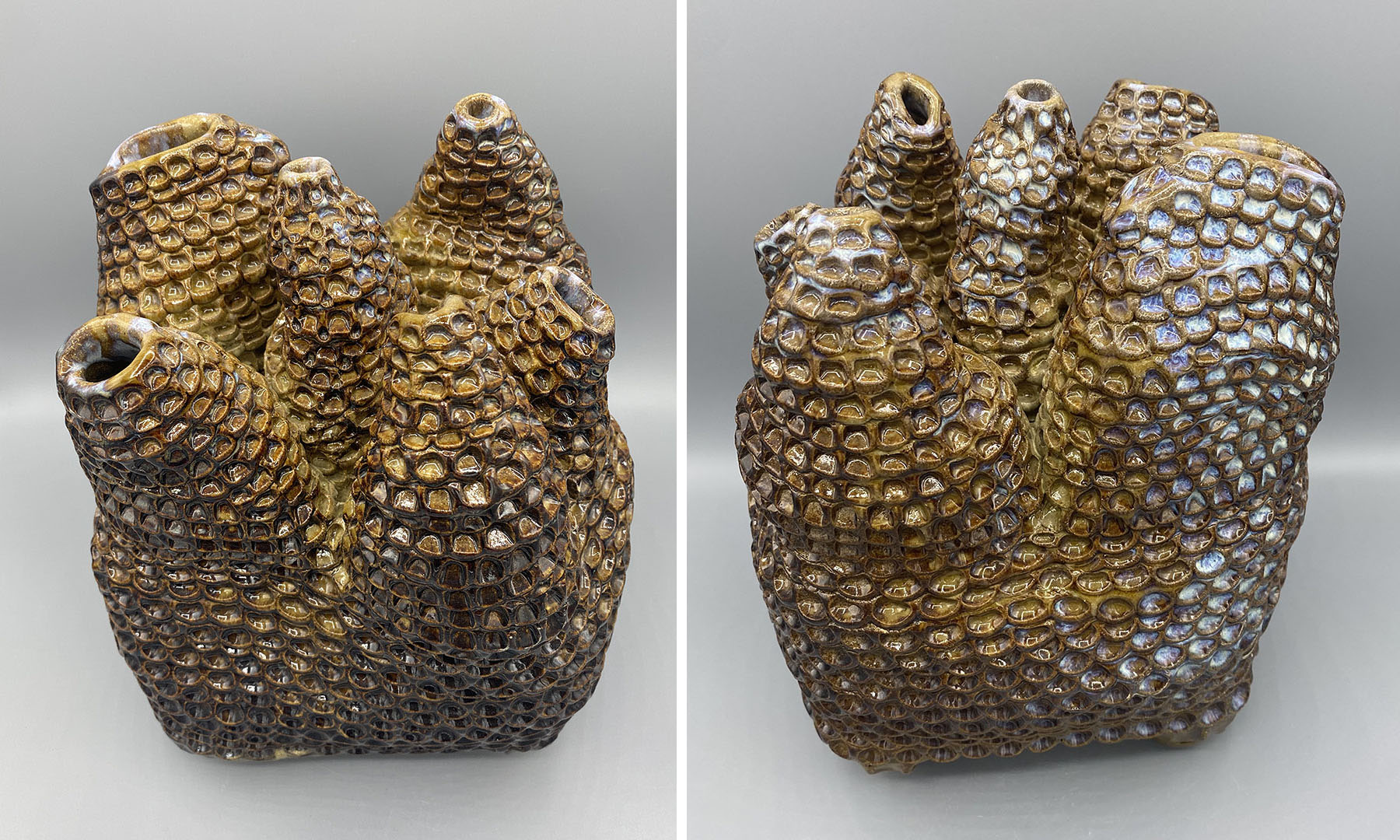 MEDIUM: Brown clay, hand-built, coiled sculpture,