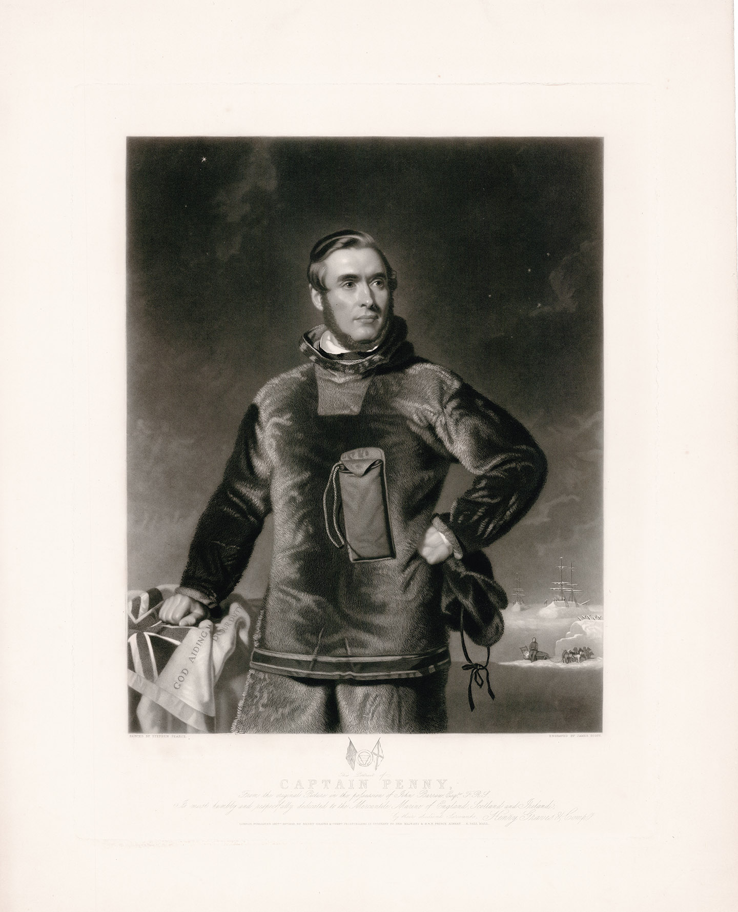DESCRIPTION: William Penny (1809-1892) was a Scottish born mariner who from the age of 12 joined his father on whaling expeditions to the Arctic. His expertise led to him being approached to take part in the search for the lost Arctic expedition under Sir John Franklin. In 1847 he commanded the whaler St Andrew in Baffin Bay and began a search for the but failed to get through Lancaster Sound. He returned for a second search in 1849 on the whale ship Advice but was again turned back by ice. In 1850, and with financial backing of Lady Jane Franklin, he was put in charge of the ships Lady Franklin and Sophia, he joined the expedition under Captain Horatio Austin to investigate the areas of Wellington Channel and Beechey Island. After wintering at Assistance Bay on Cornwallis Island, Penny proceeded to the Wellington Channel, discovering there Queens Channel and the eponymous Penny Strait. A disagreement with Austin led to his return to Scotland, but his contribution was recognized with the portrait of him by Stephen Pearce (now in the National Portrait Gallery).<br><br> Sadly there were no survivors from the Franklin Expedition.<br><br>