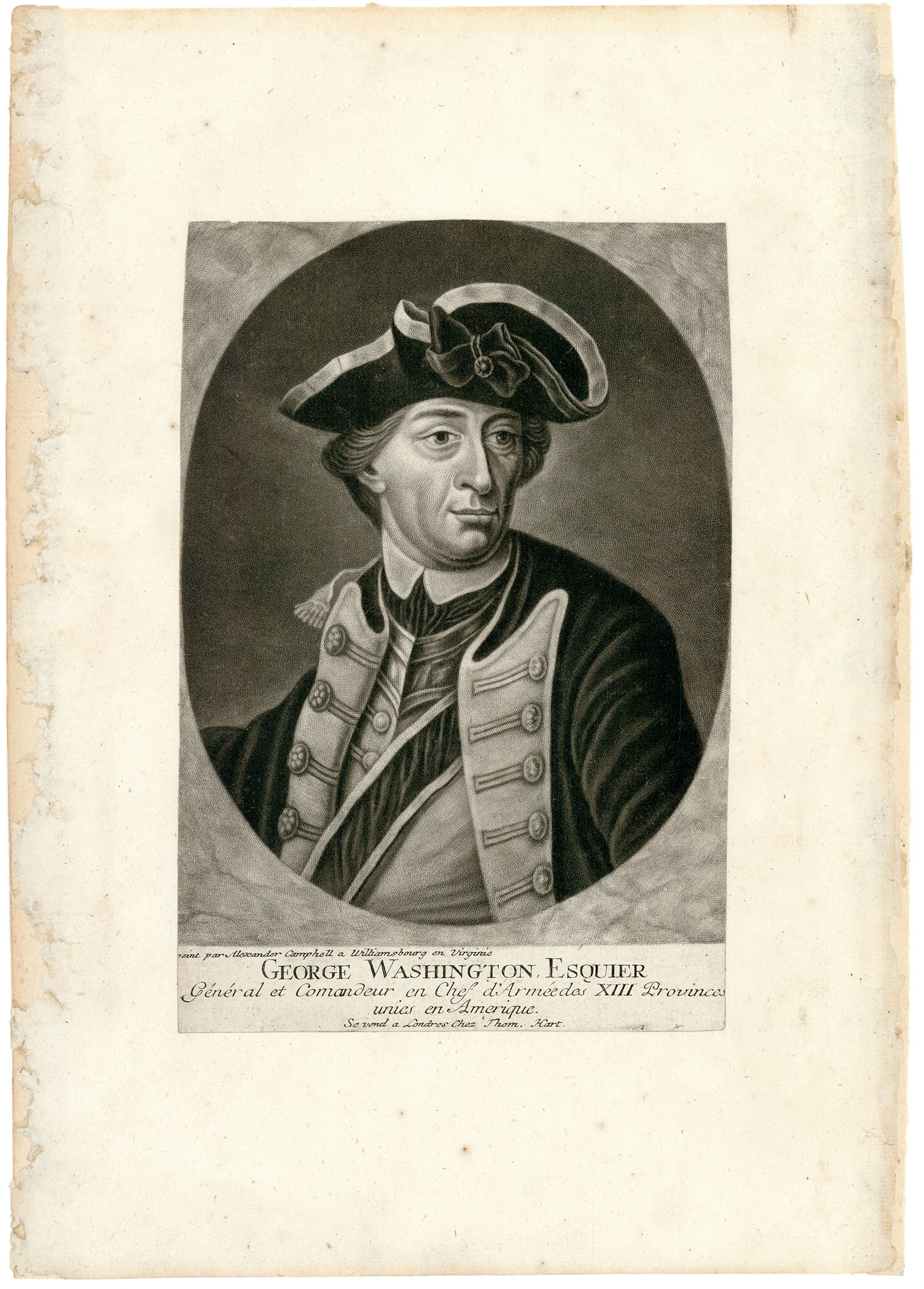 DESCRIPTION: Paeint par Alexander Campbell a Williamsbourg en Virginie. (after a painting by Alexander Campbell in Williamsburg, Virginia).<BR><BR> Mezzotint produced before George Washington became president.
