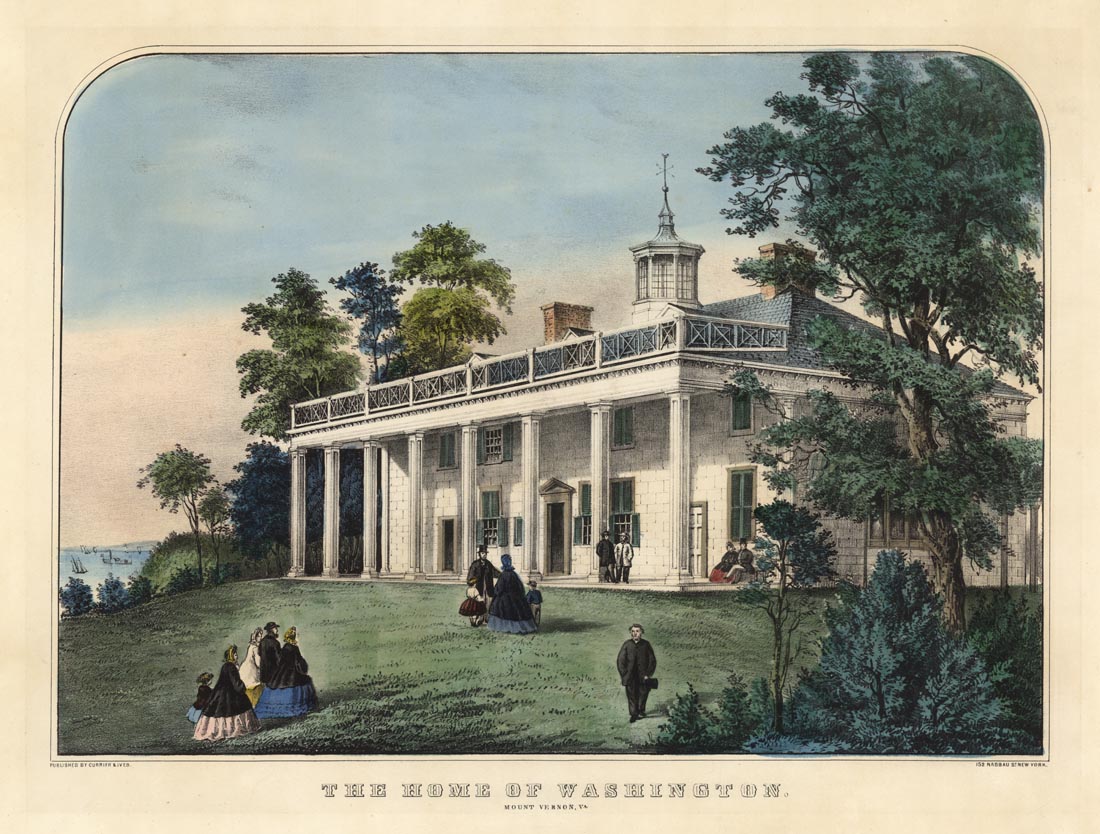 DESCRIPTION: A fine view of Mount Vernon, the home of George Washington. The Potomac River is shown in the distance.