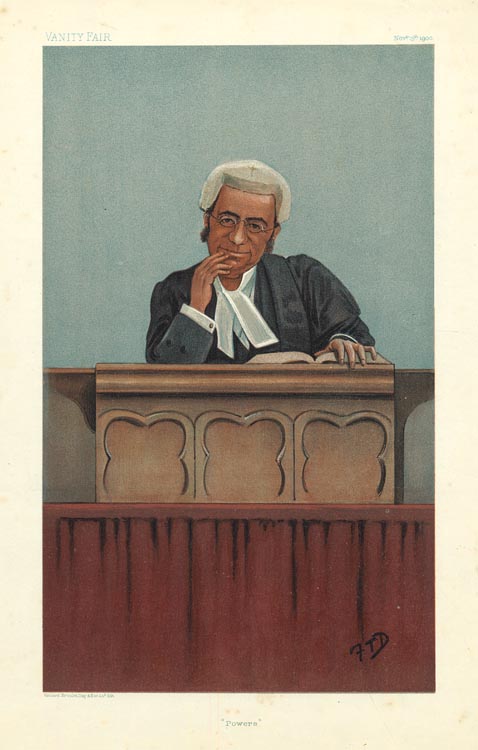 ADDITIONAL INFO: An image of Mr. Justice Farwell after a drawing by Spy. Printed by Vincent Brooks Day & Son. One of a fine group of portraits of lawyers and judges produced by Vanity Fair.