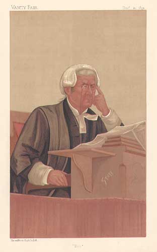 DESCRIPTION: An image of the Hon. Sir Robert Romer after a drawing by Stuff. Printed by Vincent Brooks Day & Son. One of a fine group of portraits of lawyers and judges produced by Vanity Fair.