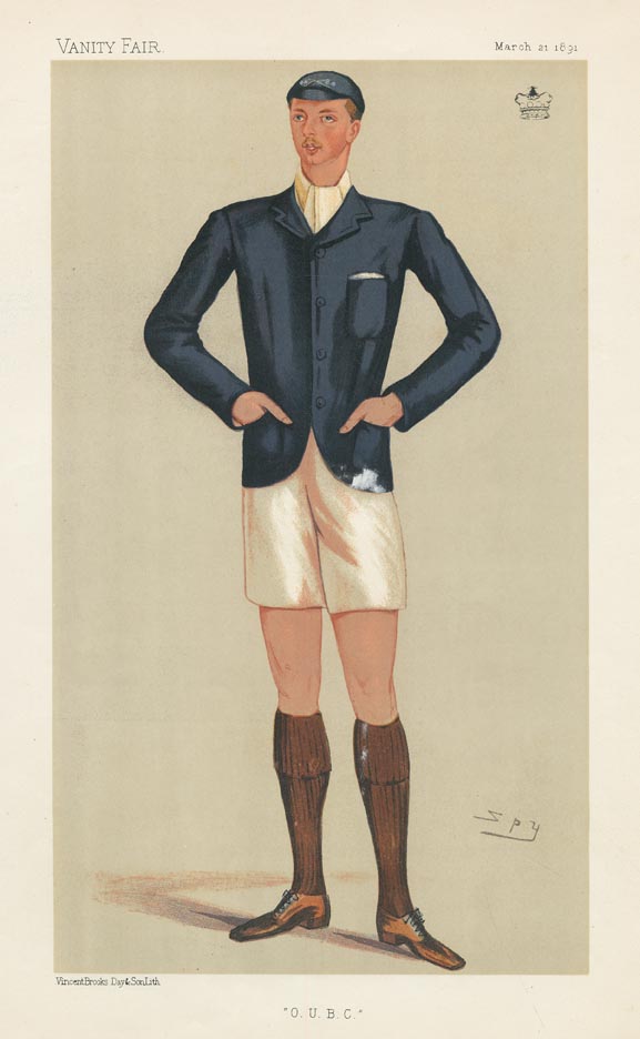 DESCRIPTION: An image of Lord Ampthill after a drawing by Spy. Printed by Vincent Brooks Day & Son. One of a fine group of twenty-two portraits of prominent scullers produced by Vanity Fair.<br><br> He is a very tall, very agreeable, and good-looking young man, with a long, strong back, which is worth much in a boat.<br><br> Naturally he went to Eton, where he became Captain of the Boats, President of “Pop,” and President of the Literary Society. He was also second Oppidan in the School, but failed to rise above mediocrity in any physical line save rowing. From Eton he went to New College, and to-day he will row his third University Boat Race; having been once beaten by Cambridge and having once succeeded in defeating them by a few yards after the best race on record since the Dead Heat of 1877. He has often been beaten at Henley; but last year, in the stout companionship of Mr. Guy Nickalls, he won the Silver Goblets; and he has occasionally won other races. At Oxford he has begun his school career over again, having been chosen President of the University Boat Club and of the Union Society; for which last office he beat an Archbishop’s son by six votes.