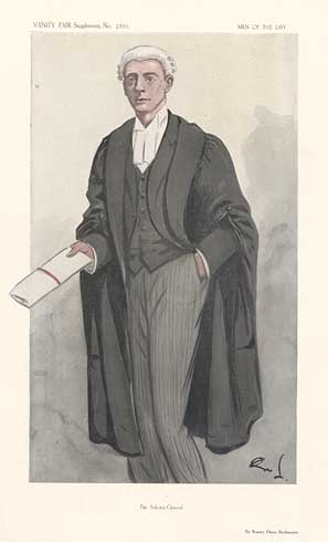 DESCRIPTION: An image of Sir Stanley Owen Buckmaster. After a drawing by "Owl". One of a fine group of portraits of lawyers and judges produced by Vanity Fair. The last legal image as well as one of the last Vavity Fair prints to be made.