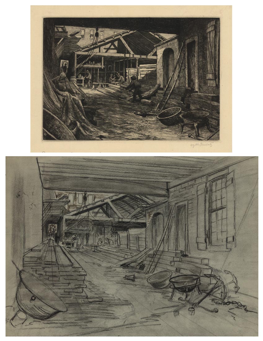 ADDITIONAL INFO: Both drawing and etching unsigned, etching inscribed "By Ch Mielatz."