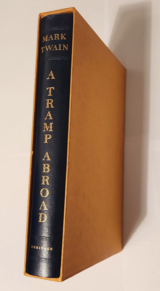 DESCRIPTION: Mark Twain. Illustrated by David Knight and including several pictures made by the author of this book without outside help, introduction by Edward Wagenkencht, xix, (1) 395 pages, 54 illustrations, (10 color), appendix, octavo (8vo), textured dark blue covers with embossed man on front, gold lettering on spine, slipcase. Sandglass brochure laid in.