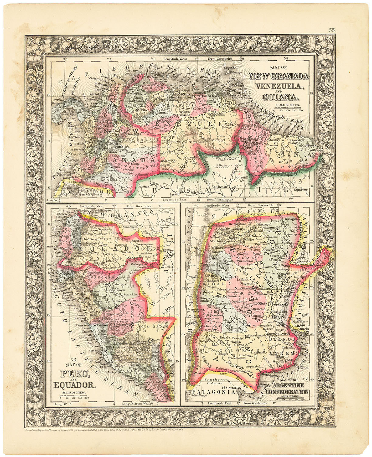 DESCRIPTION: A decorative map from Mitchell's "New General Atlas." Nicely embellished with a rose, flower and ivy vine border.