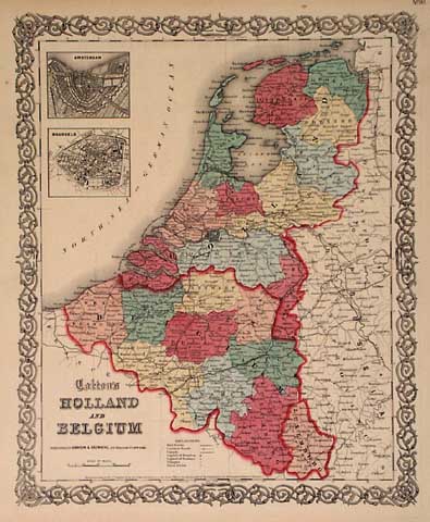 DESCRIPTION: A decorative and well engraved map from "Colton's General Atlas." Included in this map are the insets of the cities of Amsterdam and Brussels.