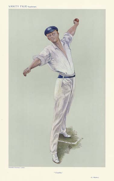 DESCRIPTION: A fine image of Mr. Colin Blythe. Printed by Hentschel-Colourtype, London. One of thirty-two images of cricketers produced by Vanity Fair.