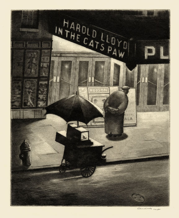 DESCRIPTION: "This was the view from my apartment window on Christopher Street in New York looking east toward 7th Avenue." Armin Landeck.