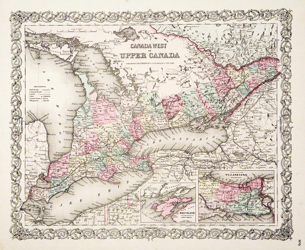 DESCRIPTION: A decorative and well engraved map from "Colton's Atlas of the World." Inset maps are of Wolf Island and Welland Canal. A nice bright impression.