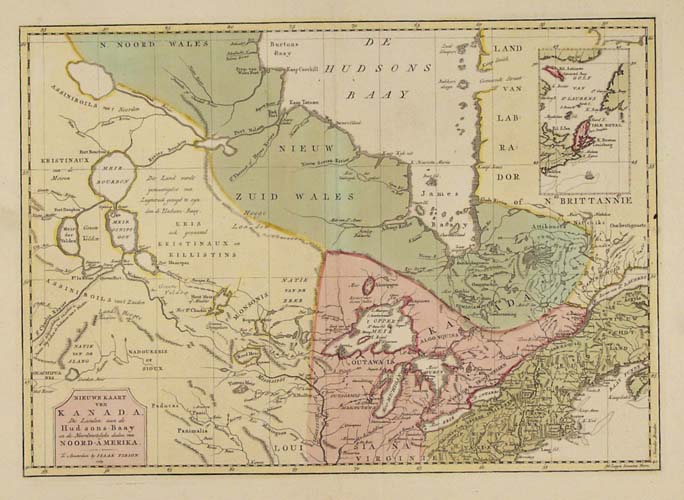 DESCRIPTION: A fine map from Tirion's atlas "Nieuwe en Boknopte Hand – Atlas." Editions of this great atlas date from before 1740 to just after 1784. This map from a circa 1769 issue. This particular impression has strong, bright original handcoloring. Inset focused on Isle Royal.