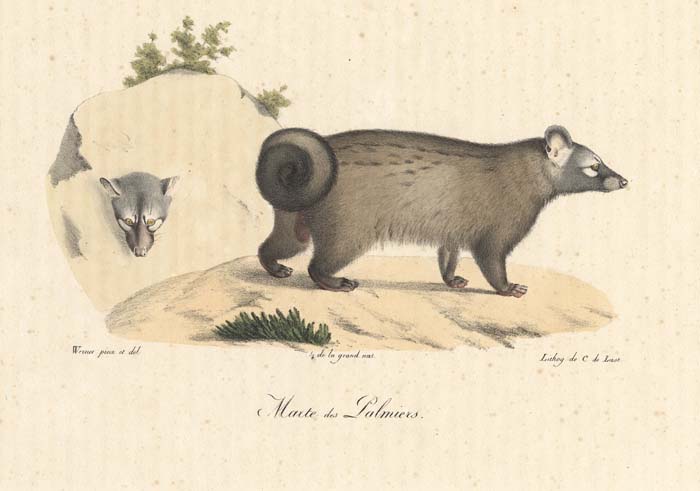 DESCRIPTION: From "Histoire Naturelle des Mammiferes, avec des figures originales enluminees, dessinees d'apres des animaux vivants". Published in Paris, A l'Imprimeire Lithographique de C. De Lasteyrie, Lithographe du Roi et de S.A.R. Mgneur. le duc d'Angouleme, rue du Bac, no. 58. <br><br>