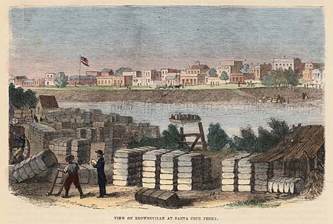 DESCRIPTION: Early shipping yard with river view, ferry and town behind.