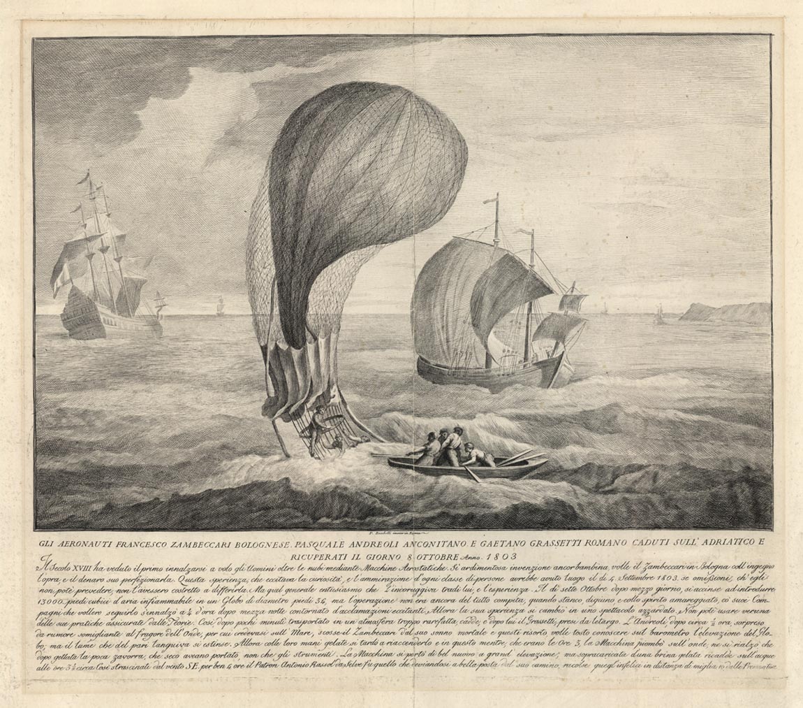 Gli Aeronauti Francesco Zambeccari Bolognese Pasquale Andreoli Anconitano E Gaetano Grassetti Romano Caduti Sull Adriatico E Ricuperati Giorno 8 Ottobre Anno. 1803.