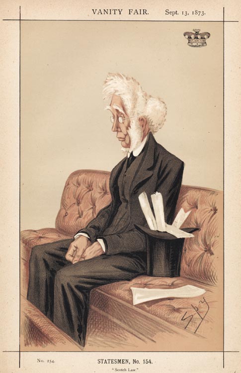 DESCRIPTION: An image of Lord Colonsay after a drawing by Spy. Printed by Vincent Brooks Day & Son. One of a fine group of portraits of lawyers and judges produced by Vanity Fair.