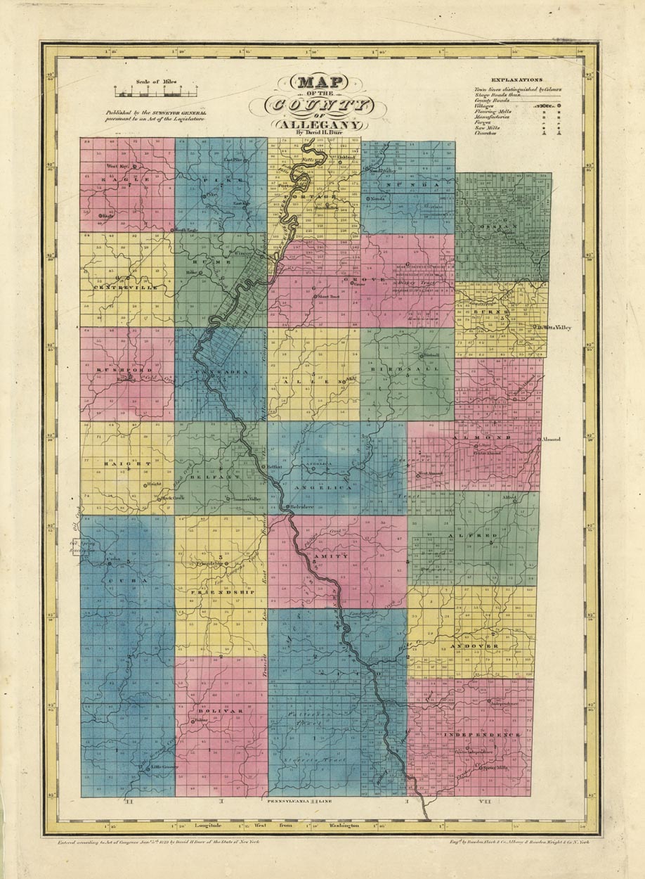 DESCRIPTION: A fine map from Burr's "An Atlas of the State of New York Containing a Map of the State and of the Several Counties. Projected and Drawn by a Uniform Scale... under the Supervision & direction of Simon De Witt, Surveyor General.…" "It is a magnificent publication and was the second atlas of an individual state ever published." (Ristow). Engraved by Rawdon Clark & Co. Albany & Rawdon, Wright & Co. N.Y.