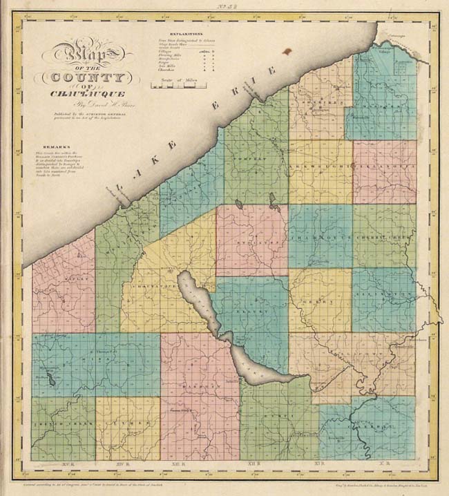 DESCRIPTION: A fine map from Burr's "An Atlas of the State of New York Containing a Map of the State and of the Several Counties. Projected and Drawn by a Uniform Scale... under the Supervision & direction of Simon De Witt, Surveyor General.…" "It is a magnificent publication and was the second atlas of an individual state ever published." (Ristow). Engraved by Rawdon Clark & Co. Albany & Rawdon, Wright & Co. N.Y.