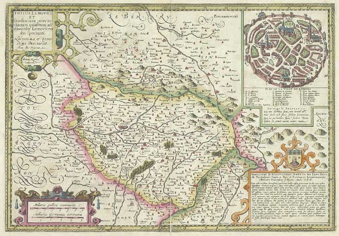 DESCRIPTION: A map of the province of Limoge, France by Antoin-Jean Fayen. A close up view of the town of Limoges is shown in the upper right. Engraved by Peter Keere.