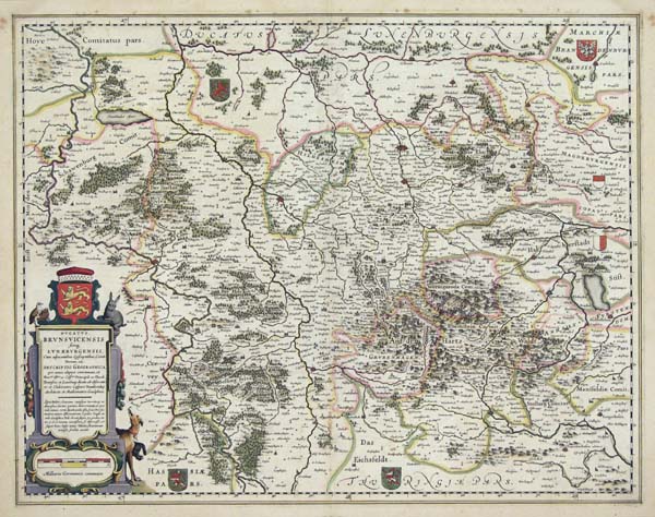 DESCRIPTION: A handsome map from a 1640 Latin text edition of Blaeu's "Theatrum Orbis Terrarum, Sive Atlas Novis." Embellished with a beautifully colored cartouche and coats of arms.