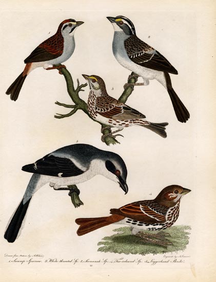 DESCRIPTION: From, American Ornithology; or, The Natural History of the Birds of the United States: Published in Philadelphia by Bradford and Inskeep, 1808-14. Printed by Robert Carr. Alexander Wilson learned much of birding by John Bartram at the 'Botanic Garden' in Philadelphia. With the assistance of Mr. Bartram, Wilson learned to draw, identify and document different bird species. He soon set out to document every species of bird in North America. Nine volumes were published during his lifetime. C.L Bonaparte published a supplement in 1825-33, to complete what Wilson started, with prints by Titian Ramsey Peale and Alexander Rider. A second edition printed from the original plates was published by Collins & Co. & Harrison Hall in 1829.