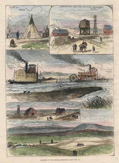 ADDITIONAL INFO: A collage of five views, two of which are "Station with tank for watering engines, N.P.R." and "Bismark".